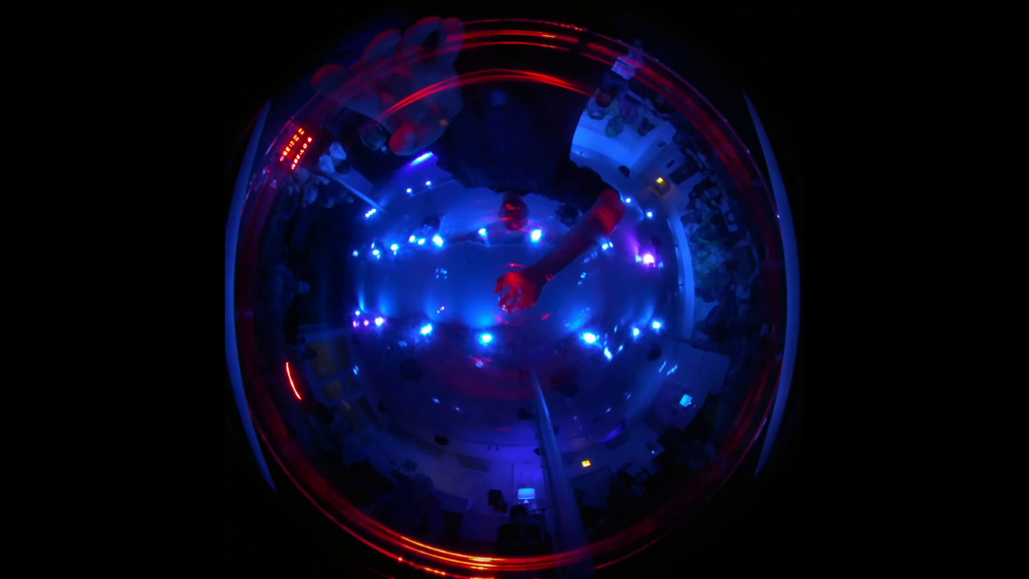 Fig. 5. 360º visual point of view of the binaural ears that captured the Coppice Sonic Observation performance at Elastic Arts, Chicago, 8 July 2022. Still image from Coppice retrospective video showtimecapsule, 2023, <https://youtu.be/BQIahQXtSAk>. (© Future Vessel)